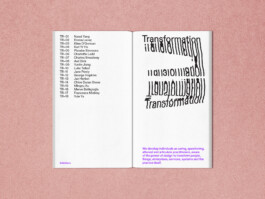 ES Design Transforms es una iniciativa que pone de relieve una selección de proyectos de estudiantes y personal docente del departamento de Product, Ceramic and Industrial Design de la universidad Central Saint Martins. Aunque los diferentes cursos dentro departamento operan en el mundo de las cosas, las conexiones entre las personas y el mundo que las rodea son el foco esta exposición. Los materiales, procesos y técnicas son sólo instrumentos para lograr un impacto social. La identidad visual de la exposición estuvo impregnada del espíritu de una escuela de arte. Los títulos del manifiesto Design Transforms fueron sometidos a un tratamiento tipográfico que sugiere fluidez y experimentación, tratando de transmitir una serie de profesiones en flujo constante. El diseño se manifestó a través de soportes físicos y digitales, desde banderas hasta redes sociales.
