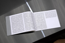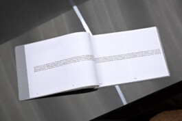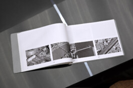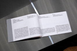 The publication Attending Spaces presents four site-specific choreographies by performance artist Elin Eyborg from 2012 to 2017. These pieces intend to activate the overlapping field between architecture and performance making. Here, the artist proposes an emerging circular economy transforming excess building site materials into "demanding props”; props that impose a resistance, which in turn influences how the dancers move. Within the book, the four performances occupy a quarter of spread. This unconventional text arrangement results in each the texts ending at varying intervals. As a visual aid, each performance is assigned a differing page number: conventional numerals, Roman numerals, digital time and binary numerals. The final section of the book documents the Attending Spaces performance, which took place in South London over the course of 4 days. Here photographer Chloe Tun Tun captures thet laborious nature of the piece performed within a disused overground train arch. Once again exploiting the book's landscape format, movements are broken down into single frames and laid out across the spread in sequence. The images are printed using a three-colour process developed by Color Library. The PVC dust jacket mimics the sleek appearance of the gray geo-textile used in the performance.
